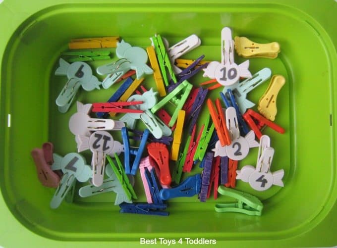 Different colored pegs are great to set up a Simple Color Sorting Activity for your toddler.