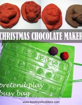With Christmas approaching, my kids are already in mood to do some Christmas themed crafts and activities. This is why I came up with this Christmas chocolate maker pretend play and turned it into a busy bag that both my toddler and preschooler enjoy playing! After all, they love eating chocolate, and making chocolate is…